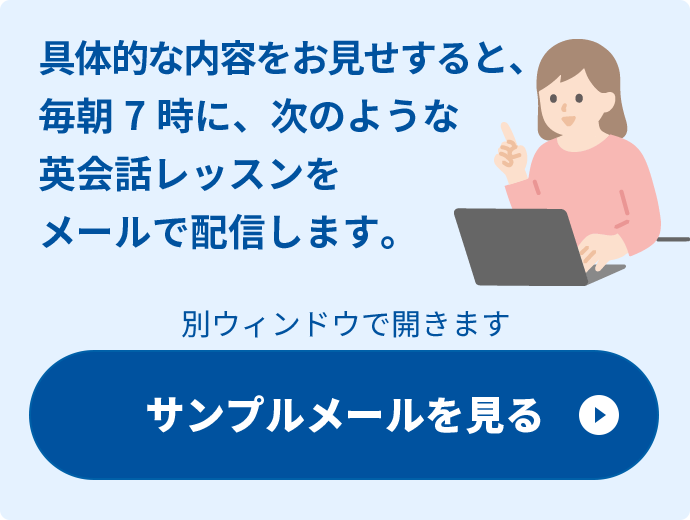 月曜日~金曜日まで、毎朝7時に英会話レッスンメールを配信し、メールで、オンライン英会話レッスンを受講するレッスンになっています。
